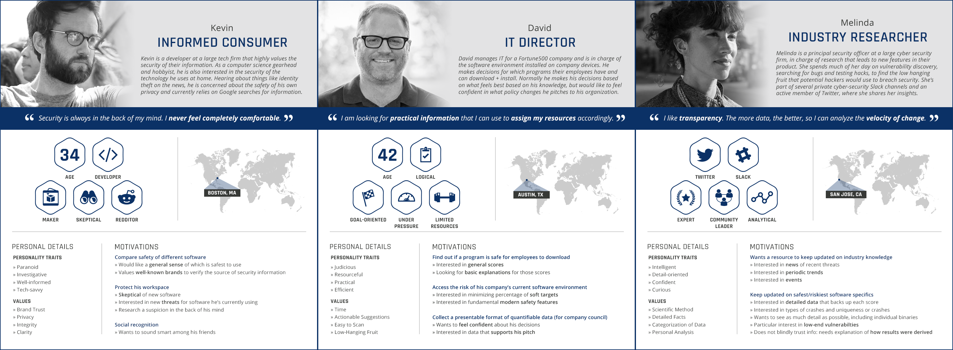 CITL was previously only presenting their findings to audiences of security professionals. In order to appeal to their desired target audiences of informed consumers, my team and I needed to propose a way to present their overall findings simply.